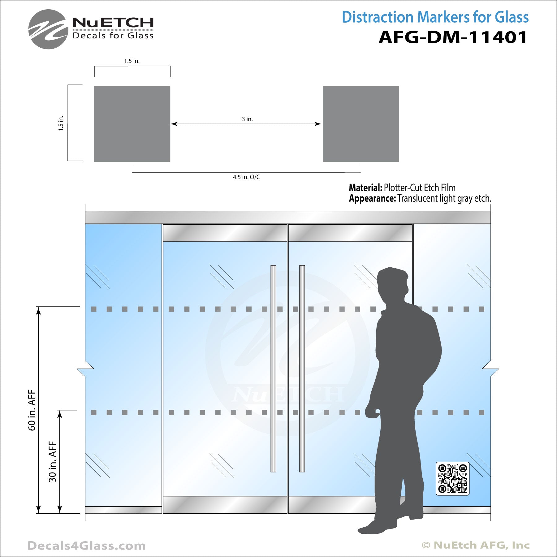 - Distraction Markings help keep people from walking into the clear glass.